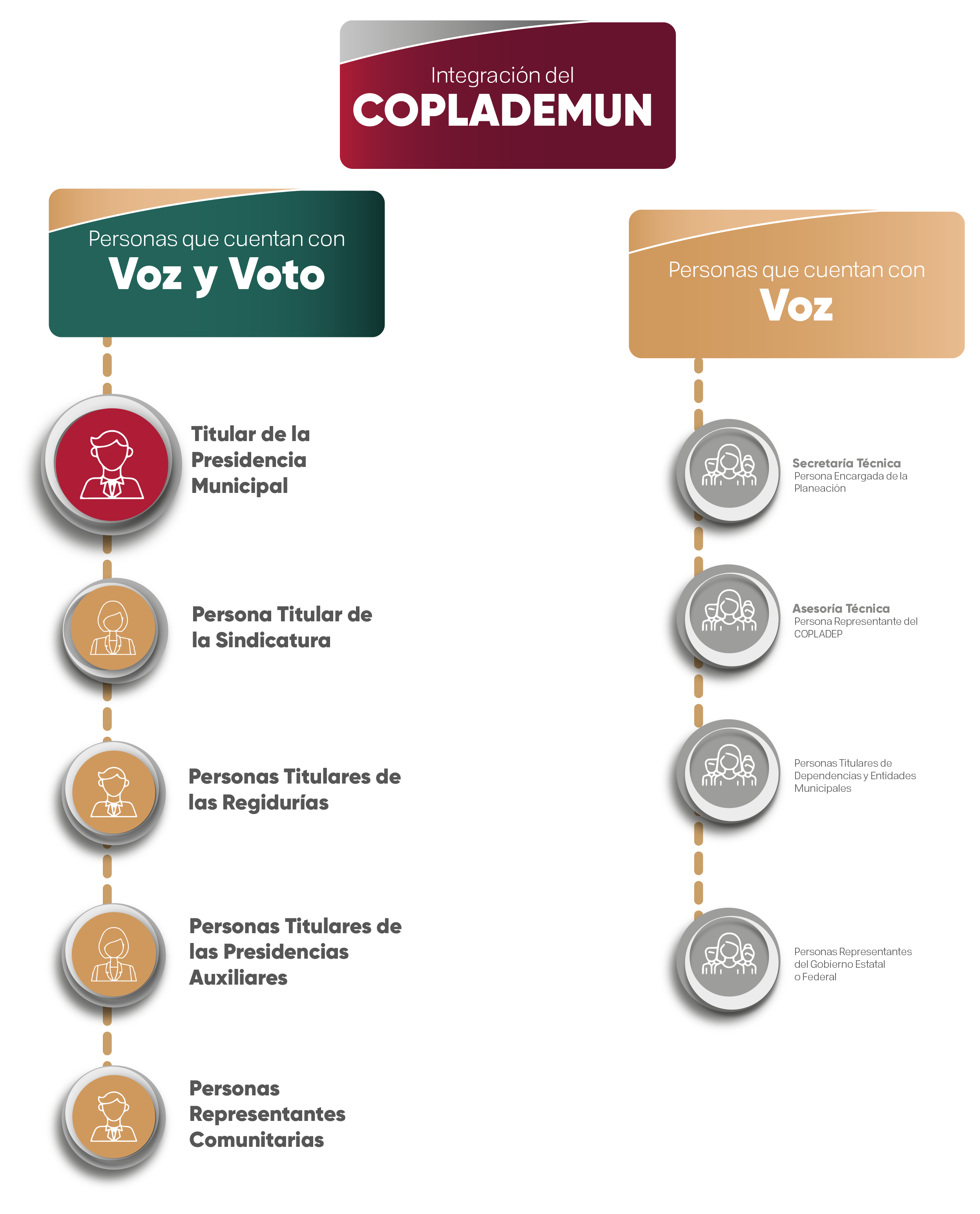 El Comité de Planeación para el Desarrollo Municipal (COPLADEMUN) es el órgano de participación social y consulta constituido por el ayuntamiento en materia de planeación y programación del desarrollo municipal, el cual contará con la intervención de los sectores público, social y privado en atención de las necesidades de su población. El COPLADEMUN tiene como objetivos: